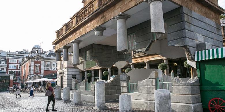 Ini adalah ilusi optik paling menakjubkan untuk membuat bangunan di salah satu distrik wisata tersibuk di London itu melayang-layang di udara. Bagi orang yang lewat di depannya, gedung itu tampak seolah-olah bagian dari bangunan pasar bersejarah di Covent Garden yang telah rusak dan tak lagi berfondasi. Bangunan itu mengambang tanpa bantuan, tinggi di atas mereka.
