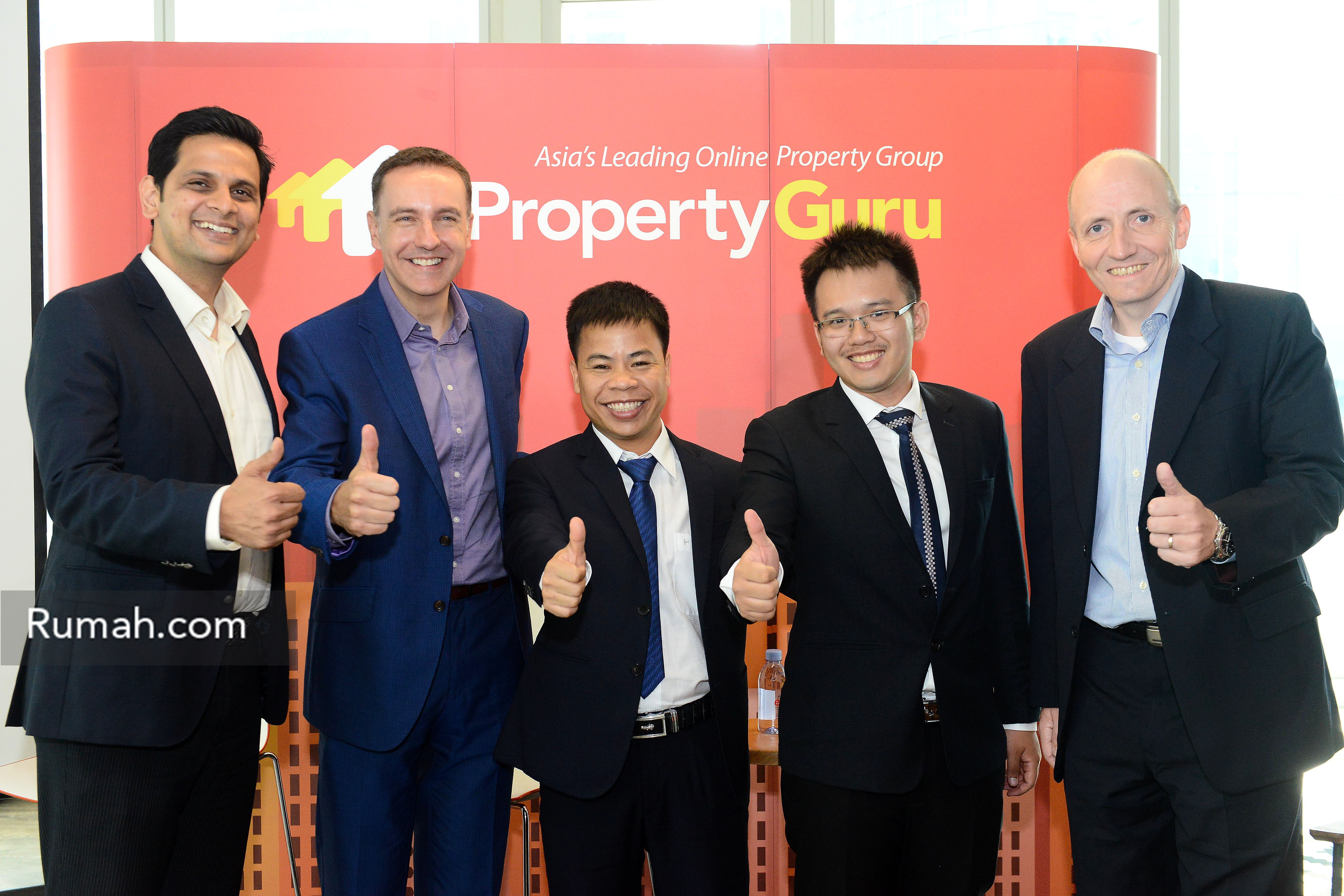 Kiri ke kanan; CEO PropertyGuru Grup, Hari Krishnan; Vice Chairman & Co-Founder PropertyGuru Group, Steve Melhuish; Founder and Managing General Director of Batdongsan.com.vn, Lê Xuân Trường; Deputy General Director of Batdongsan.com.vn, Nguyễn Quốc Anh; Executive Director & Co-Founder PropertyGuru Group, Jani Rautiainen.